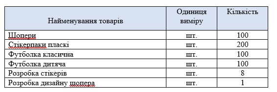 IV. Опис позицій до закупівлі товарів / технічне завдання для робіт та послуг: