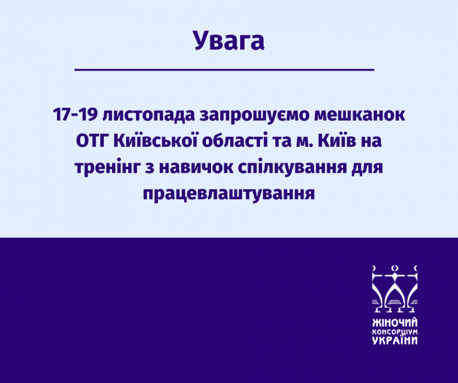 17-19 листопада запрошуємо мешканок ОТГ Київської області та м. Київ на тренінг з навичок спілкування для працевлаштування