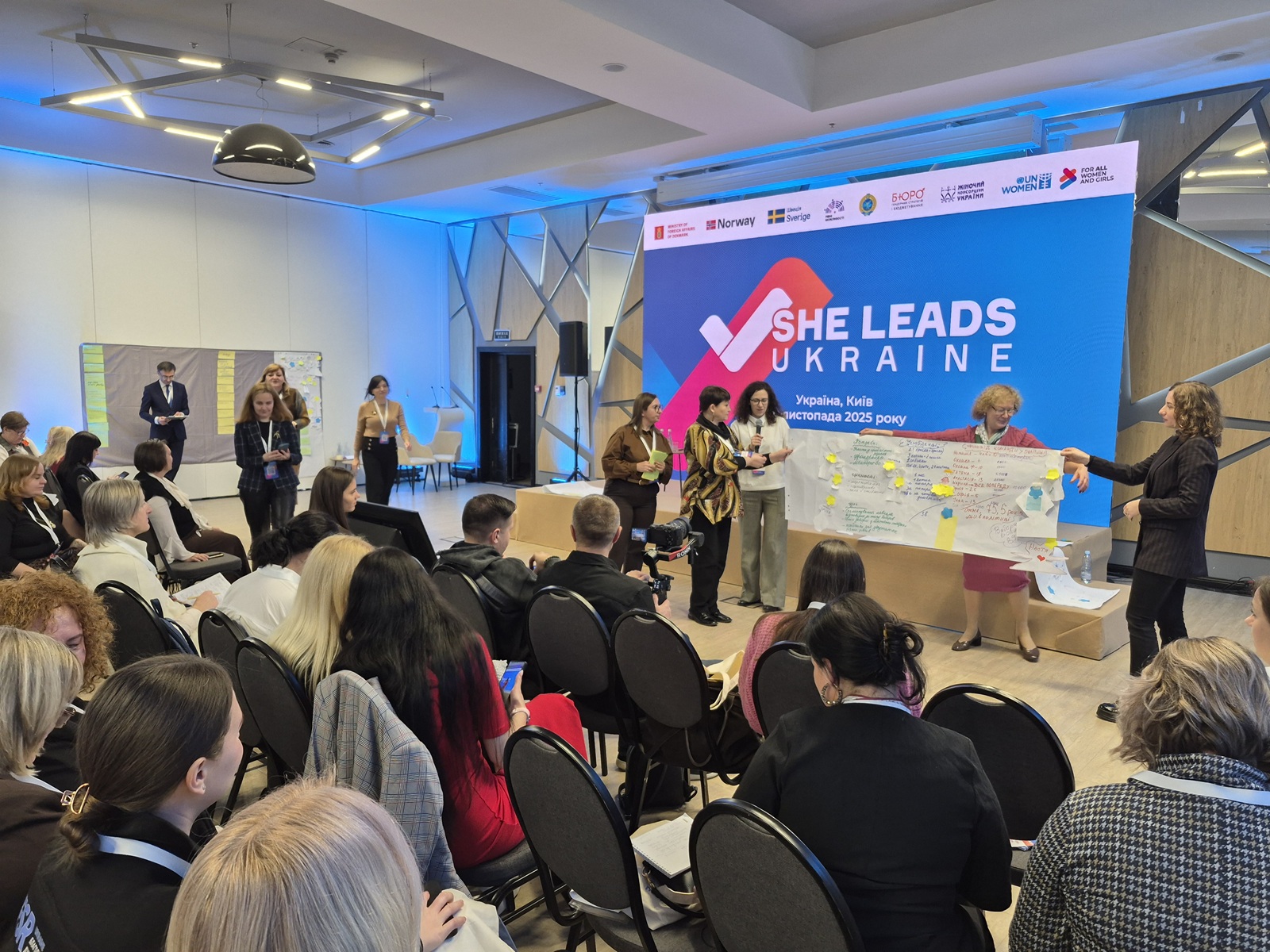28 листопада 2025 року в Києві відбувся Форум She Leads Ukraine — перший національний майданчик для мережування, навчання та посилення українських жінок-лідерок у межах масштабної ініціативи ООН Жінки з розвитку жіночого лідерства й політичної участі She Leads Ukraine. У заході, який став ключовою подією ініціативи, взяли участь понад 120 учасниць і учасників з усієї країни.